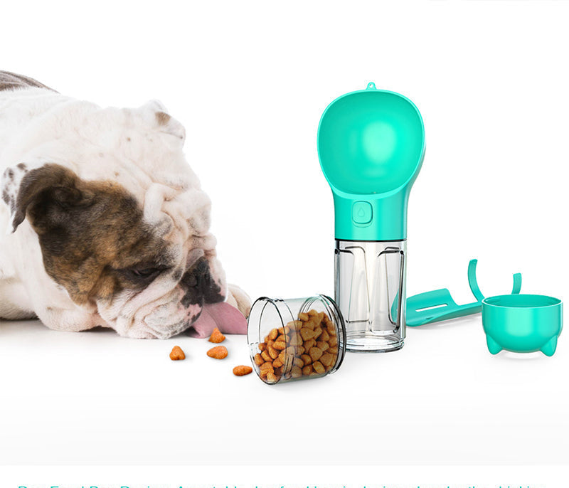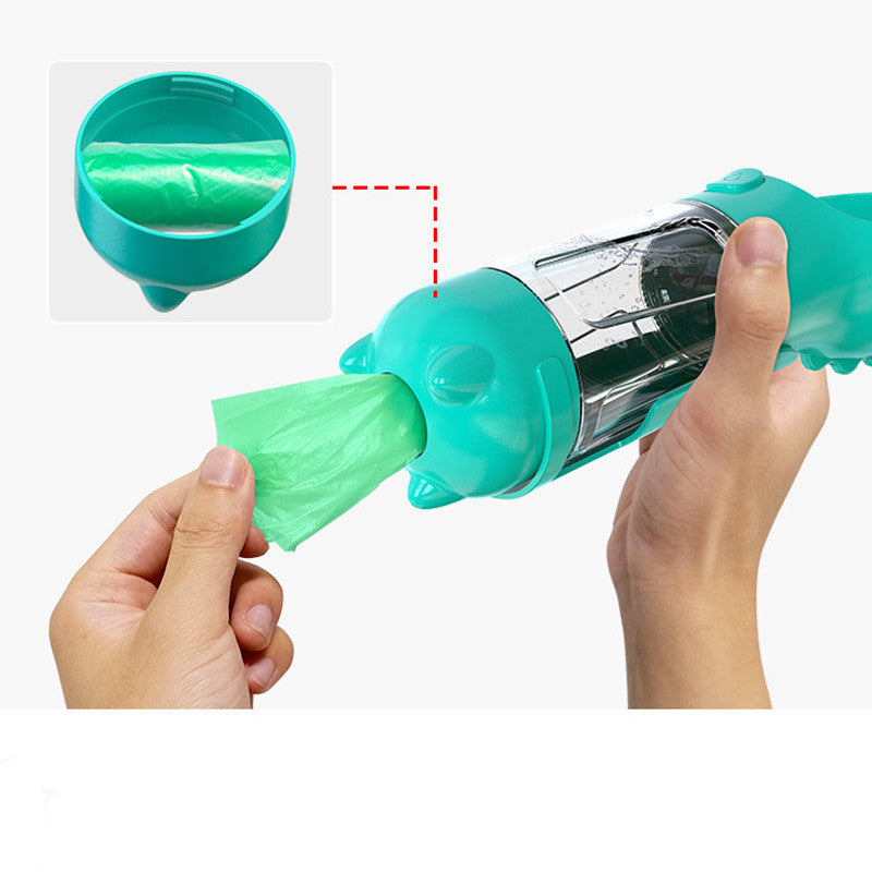 4-in-1 Trinkflasche für Hunde & Katzen, Wasser, Futter & Sauberkeit für unterwegs