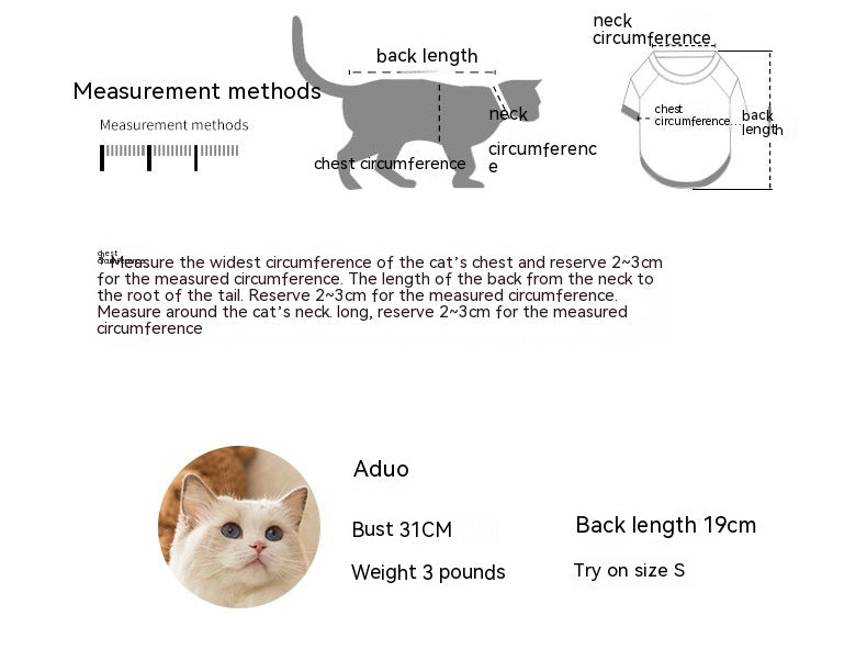 XS: Brustumfang 32 cm · Rückenlänge 20 cm · Gewicht 1–4 Jin